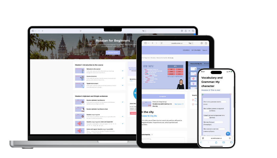 My courses are accessible on all devices, making it super convenient and user-friendly. Start learning Russian in a simple and fun way, anytime and anywhere!